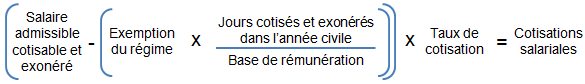 Exceptions | Cotisations salariales versées par l'employé en mise en disponibilité, en CSTD ou en préretraite L'exemption du régime pour calculer les cotisations salariales que doit verser le participant en mise en disponibilité, en congé sabbatique à traitement différée (CSTD) ou en préretraite est proportionnelle au salaire versé. Formule légale