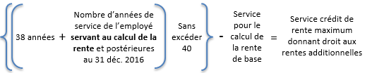 Note : Le résultat de l'addition à l'intérieur des parenthèses ne doit pas excéder 38. (Réf. : RLRQ, chapitre R-10, r. 2, art. 12.3, 12.4, 12.5, 12.6) Avant le 1er janvier 2011 Le service crédit de rente limité est le moins élevé des 2 services suivants :
